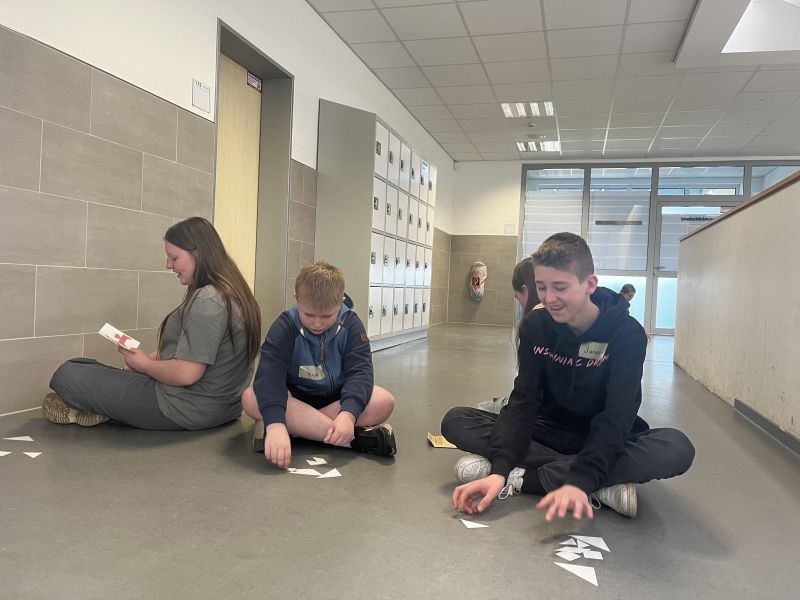 Wir haben uns zuerst inhaltlich mit dem Thema Kinderrechte befasst und uns zu den Kinderrechten informiert. Der Sowikurs hat sich für vier Kinderrechte seiner Wahl entschieden: Jette und Carlo haben sich für das Kinderrecht auf eine Wohnung entschieden, Alina und Tessa haben sich für das Kinderrecht auf Gesundheit entschieden, Kim und Devienne haben sich für das Kinderrecht auf Bildung entschieden und Kaya und Jayla haben sich für das Kinderrecht auf Freizeit entschieden. Dann haben wir zu unserem jeweiligen Kinderrecht eigene Plakate erstellt. Jette und Carlo haben z.B. Müll auf ihr Plakat geklebt, um zu zeigen, wie es in den Slums von Afrika aussehen kann. Unsere Gruppen haben sich alle etwas Besonderes überlegt, um das Thema spannend zu gestalten. So konnte man aus Pappe und Blech ein Haus bauen, ein Gesundheitsmemory spielen, ein Quiz lösen oder ein afrikanisches Kinderspiel spielen. Anschließend haben wir am 06.03.2023 die Klasse 5.5 eingeladen, um sie über das Thema Kinderrechte zu informieren. Dies haben wir mit einer PowerPoint-Präsentation eingeleitet. Danach hat sich die 5.5 auf unsere Gruppen aufgeteilt. Die Klasse 5.5 hat gut mitgearbeitet und es gab sehr lustige Gruppennamen.