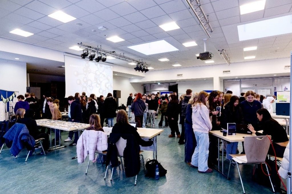 Die Bandbreite der präsentierten Themen war bemerkenswert. Von naturwissenschaftlichen Fragestellungen wie Bakterien im Schulgebäude, Atomphysik, forensischer Chemie, String-Theorie, Meeresbiologie und Astronomie (auf Englisch präsentiert) bis hin zu gesellschafts- und geisteswissenschaftlichen Projekten wie dem Landtag NRW, einem Sozialprojekt mit der Stiftung Lahde, LGBTQ+, einer Theateraufführung sowie der deutschen Wirtschaft in früheren Zeiten – die Ausstellung zeigte eindrucksvoll, wie vielfältig Interessen und Talente an unserer Schule sind.