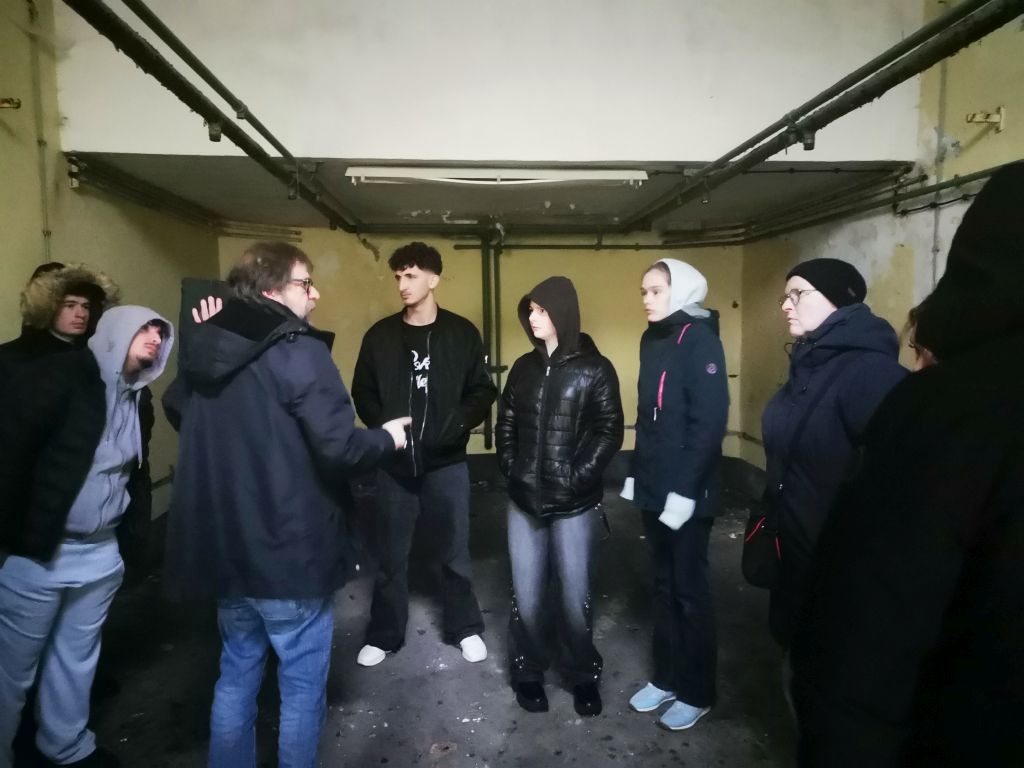 Ab 9.00 Uhr wurden wir von Martin Guse, dem Leiter der Gedenkstätte, empfangen. Er nahm die Schülerinnen und Schüler mit auf eine eindrucksvolle Reise in das dunkle Thema der Zwangsarbeit während der NS-Zeit. Von 1939 bis 1945 mussten auf dem rund 12 Quadratkilometer großen Gelände der ehemaligen Pulverfabrik über 20.000 Menschen unter schwersten Bedingungen arbeiten. Kriegsgefangene und ca. 12.000 Zivilisten aus allen von der Wehrmacht besetzten Ländern sowie 6.000 Häftlinge des "Arbeitserziehungslagers Liebenau" (Vorläufer des Lagers in Lahde) wurden hier zur Arbeit gezwungen. Sie stammten unter anderem aus den Niederlanden, Belgien, Frankreich, Italien, Polen, der ehemaligen Sowjetunion und dem Baltikum.